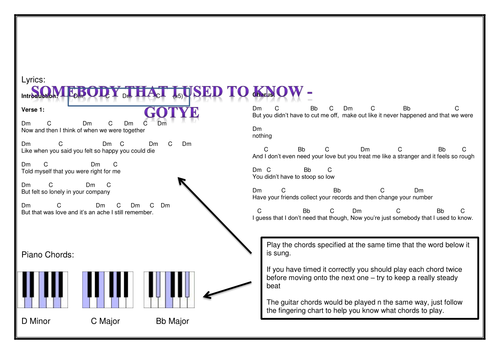 Somebody That I Used To Know Gotye Teaching Resources