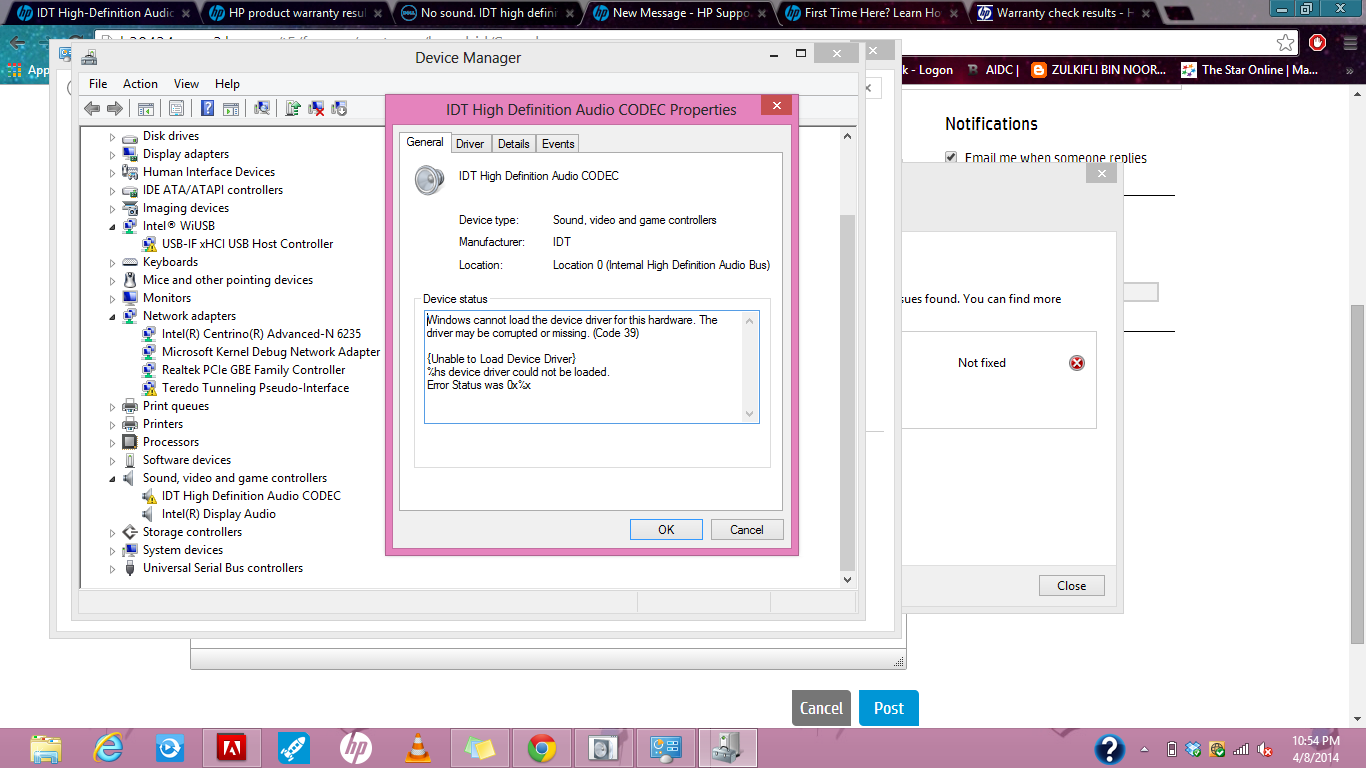 Solved Idt High Definition Audio Codec Sound Problem Hp Support Community 4237564