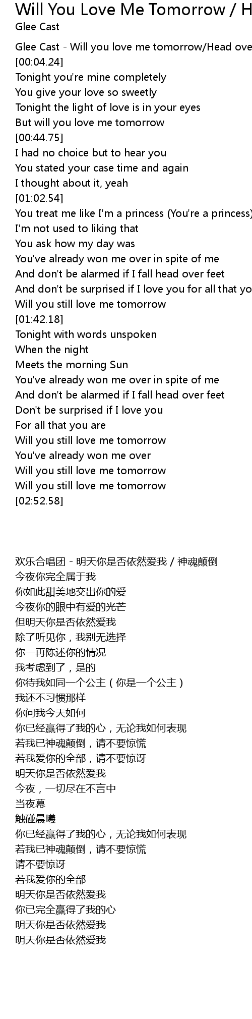 Will You Love Me Tomorrow Head Over Feet Glee Cast Version Lyrics Follow Lyrics